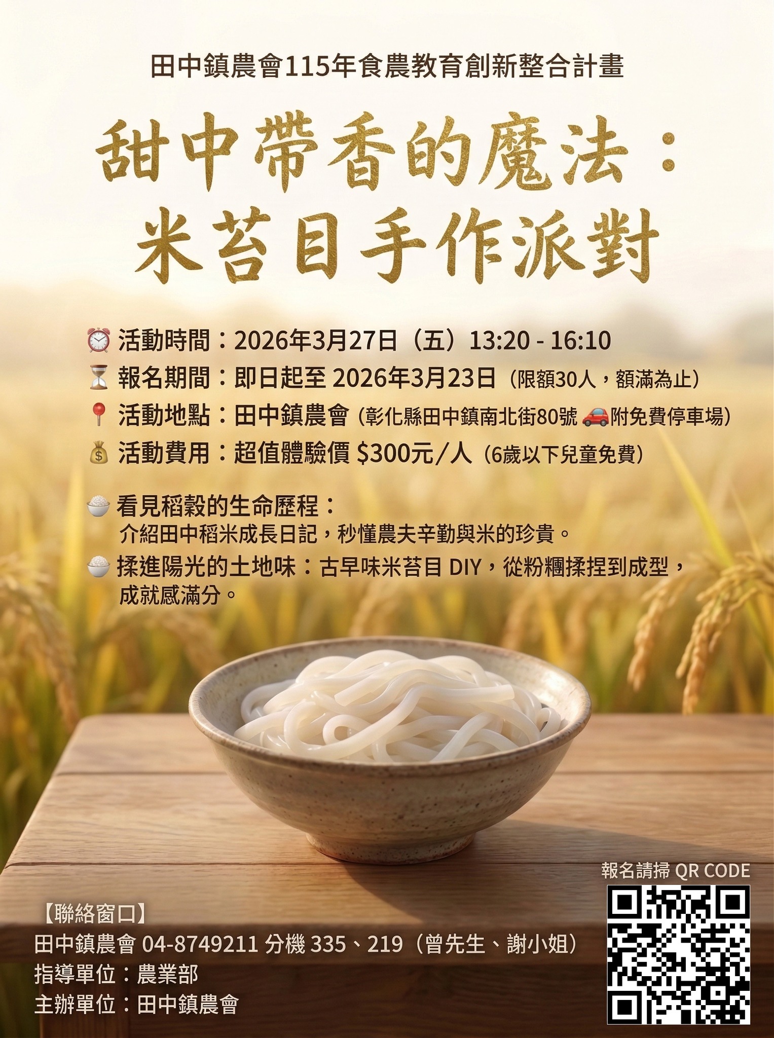 【推廣部】轉知田中鎮農會辦理「甜中帶香的魔法:米苔目手作派對」食農體驗活動