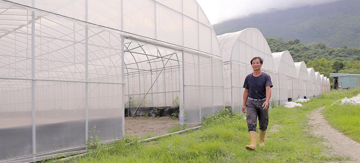 在雜草蔓生的荒田間,矗立著一整排透明溫網室,與一座羊舍,有著開朗笑容的葉秉達,正精神奕奕地在這裡培育他的山藥和馬鈴薯。