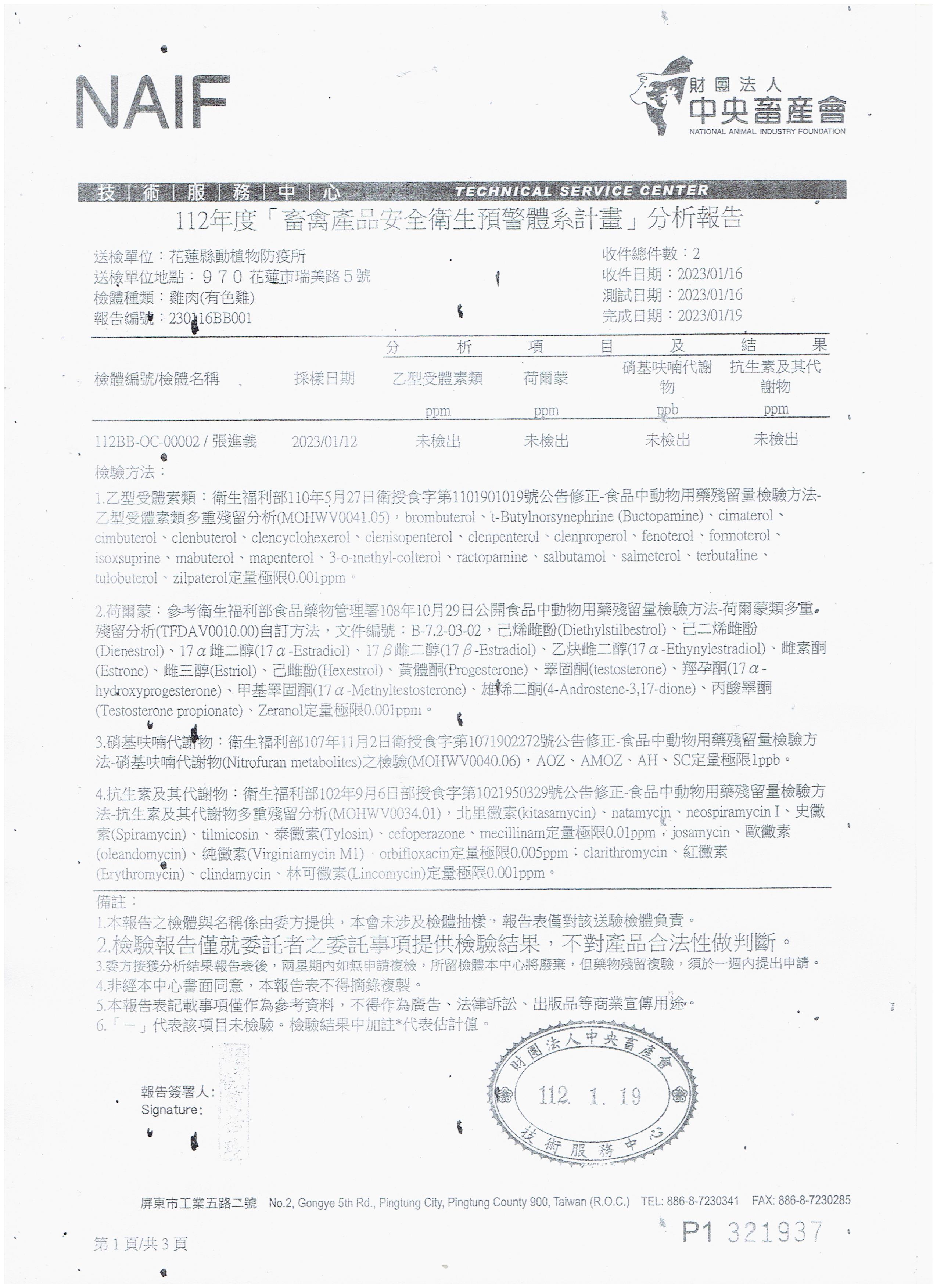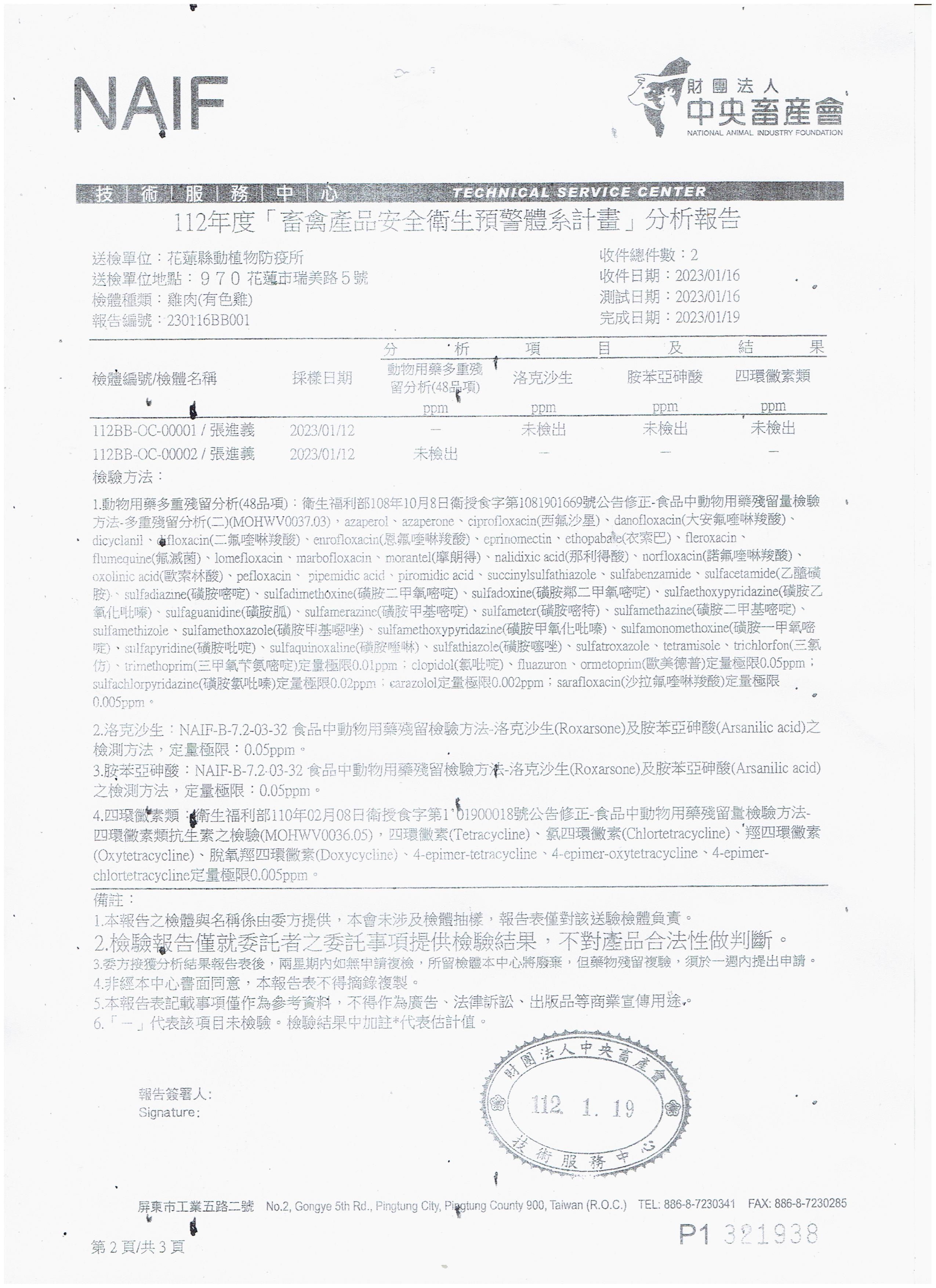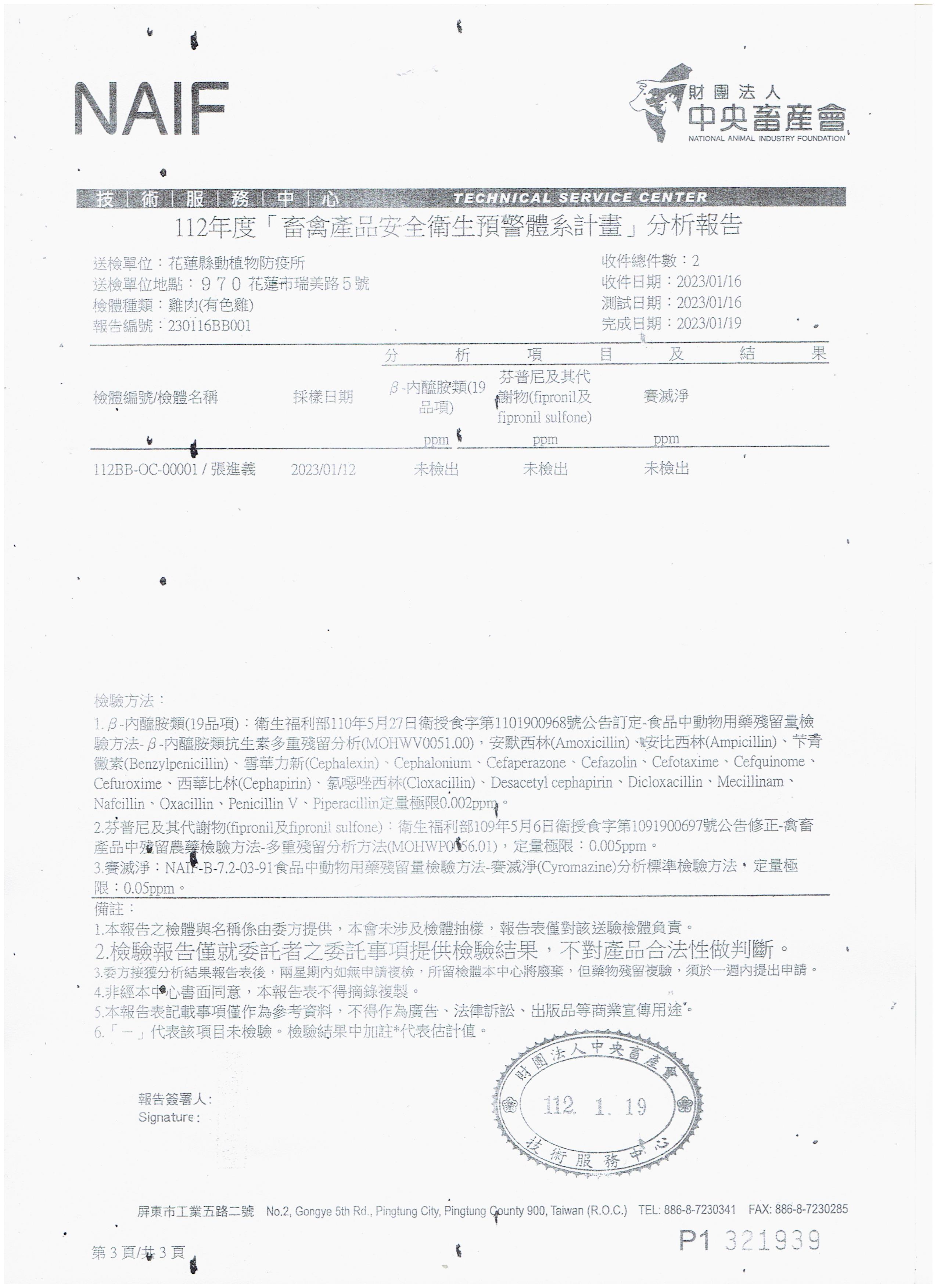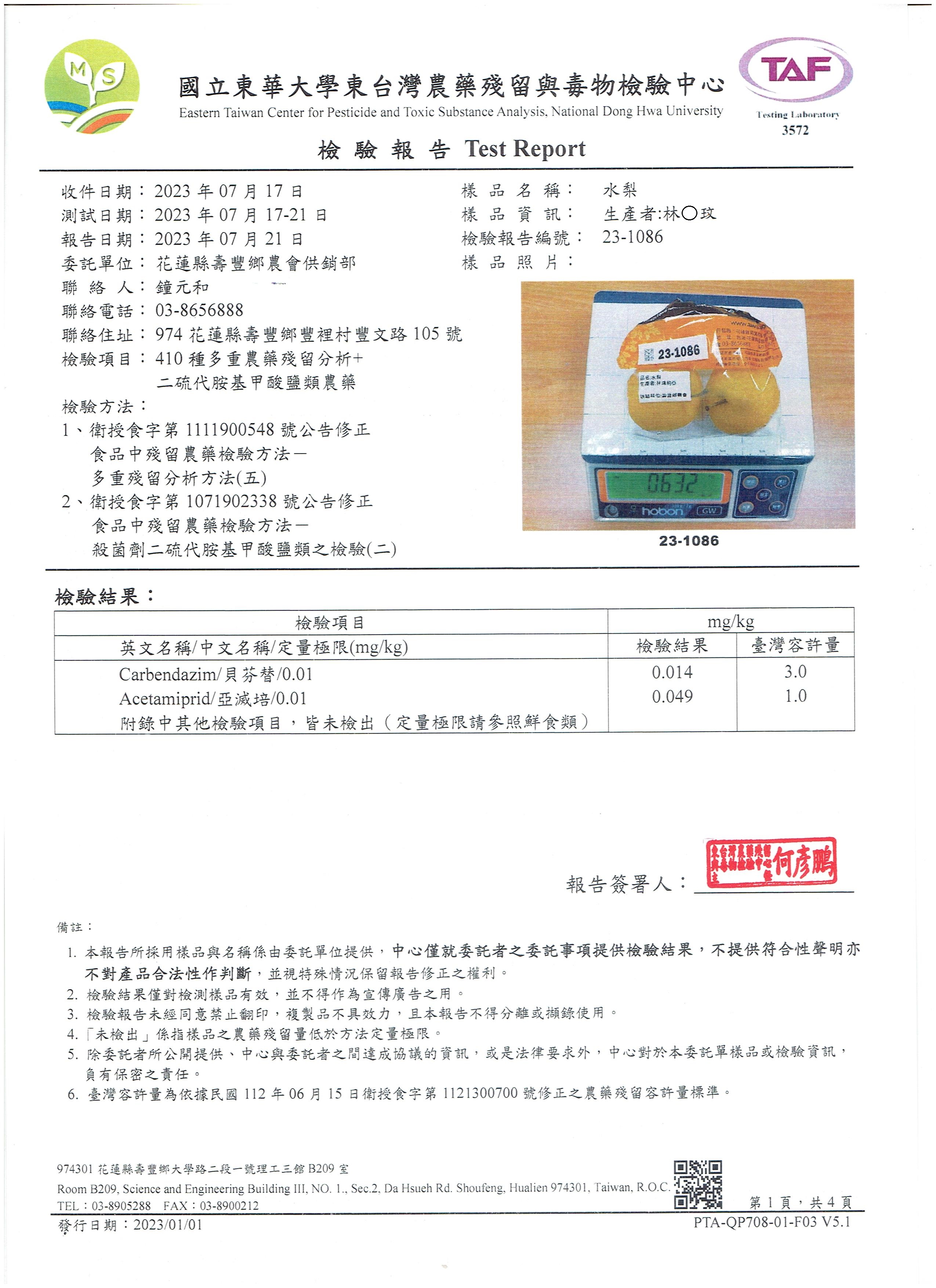 | 壽豐鄉農會(112年果艷梨農藥殘留檢驗報告)合格 | 證書1 |