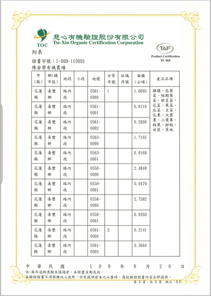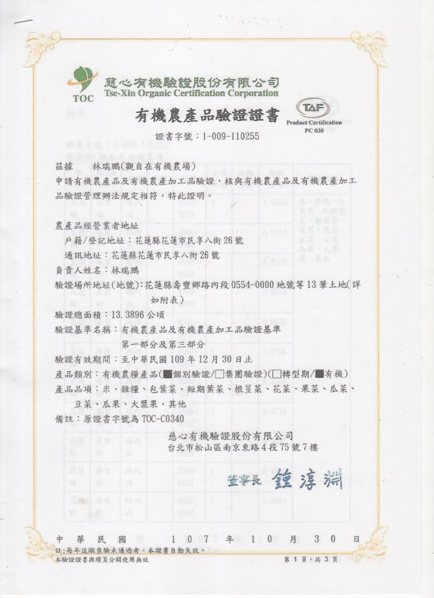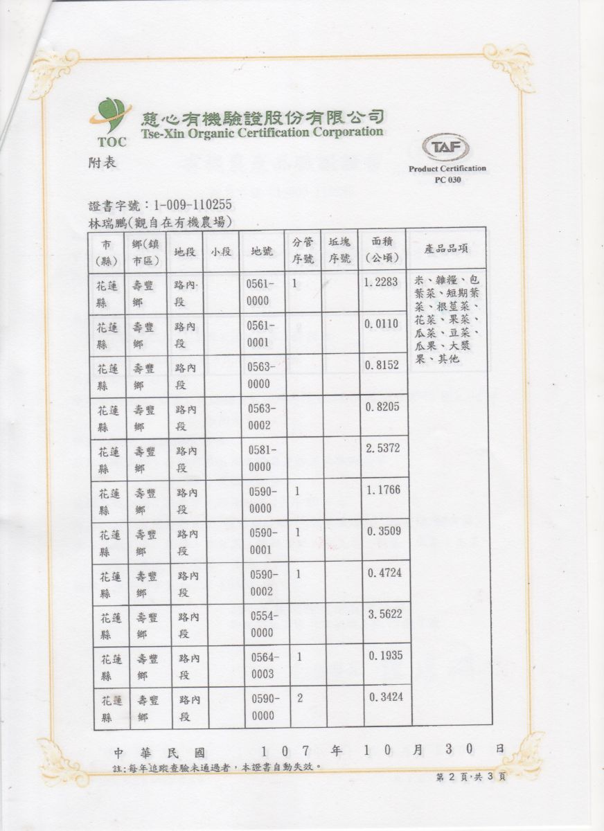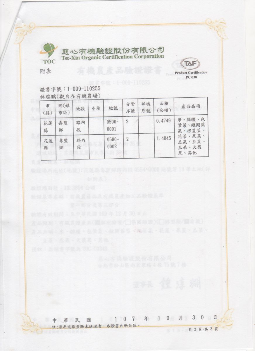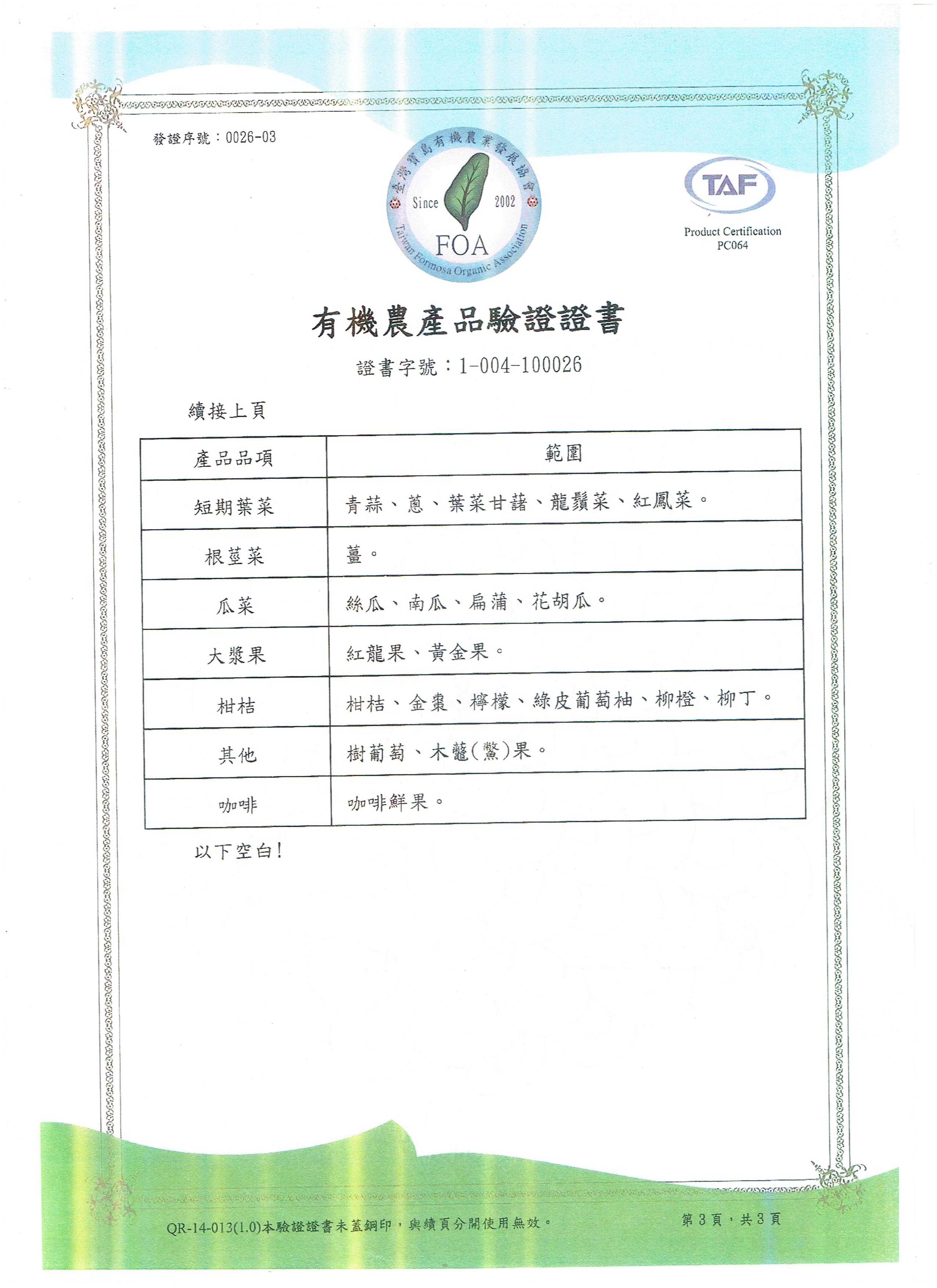 | 觀自在有機農場(林瑞鵬) | 證書1證書2證書3 |